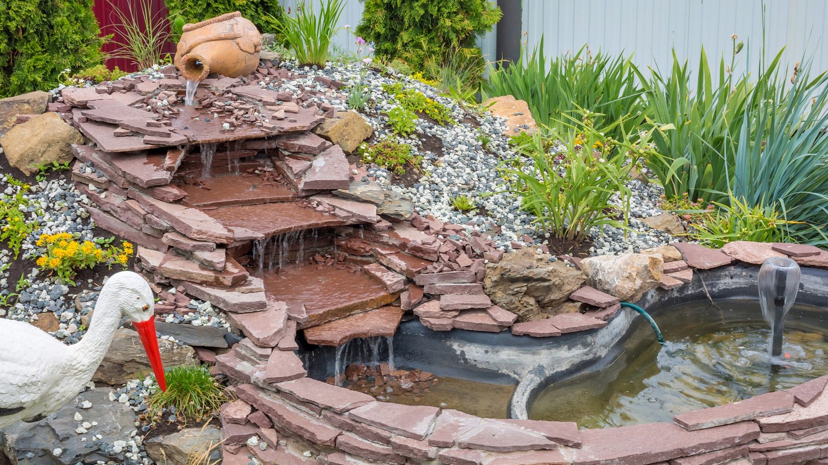 Ура, пруд почти готов! Теперь вы можете дополнить горку отсыпкой (галькой, гравием или щебнем) там, где это необходимо, или установить декор (садовые фигуры, фонари и пр.)