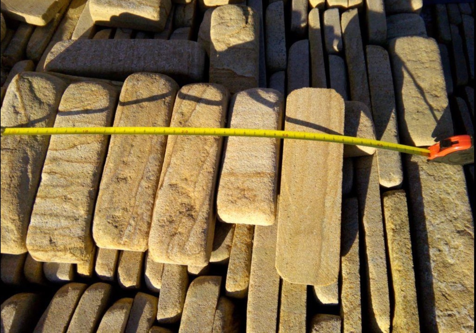 Можно также использовать песчаник, или как его называют в простонародье - пластушка. Это недорогой природный натуральный камень, его легко можно уложить как на дорожки, так и на цоколь в качестве облицовки для шубы.