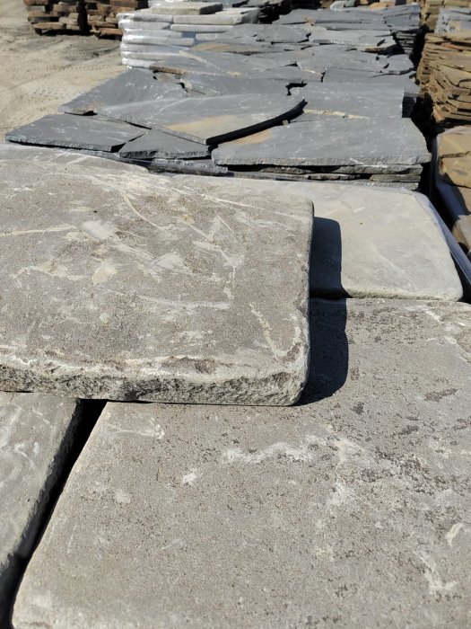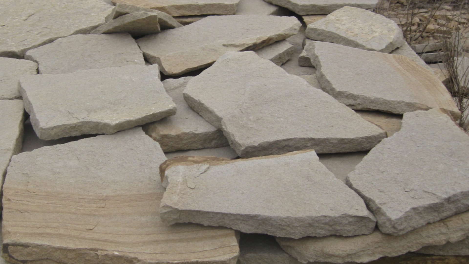 • Kamenclub.ru: Песчаник пластушка светло-серый (2,0 см)  купить в Люберцах плитняк- ластушка светло-серый, серый рваный ландшафтный плитняк колотый 13800 руб/м3   фото КАМЕНЬ КЛУБ
