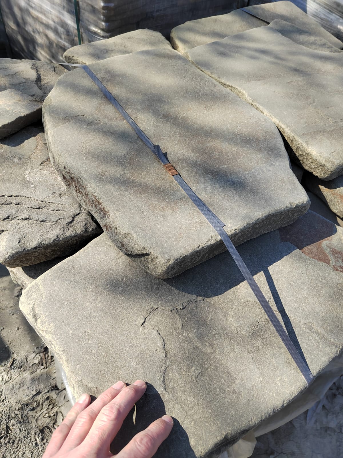 • Kamenclub.ru: Песчаник пластушка светло-серый (3,0 см)  купить в Люберцах песчаник светло-серый, серый песчаник рваный ландшафтный колотый 13800 руб/м3   фото КАМЕНЬ КЛУБ