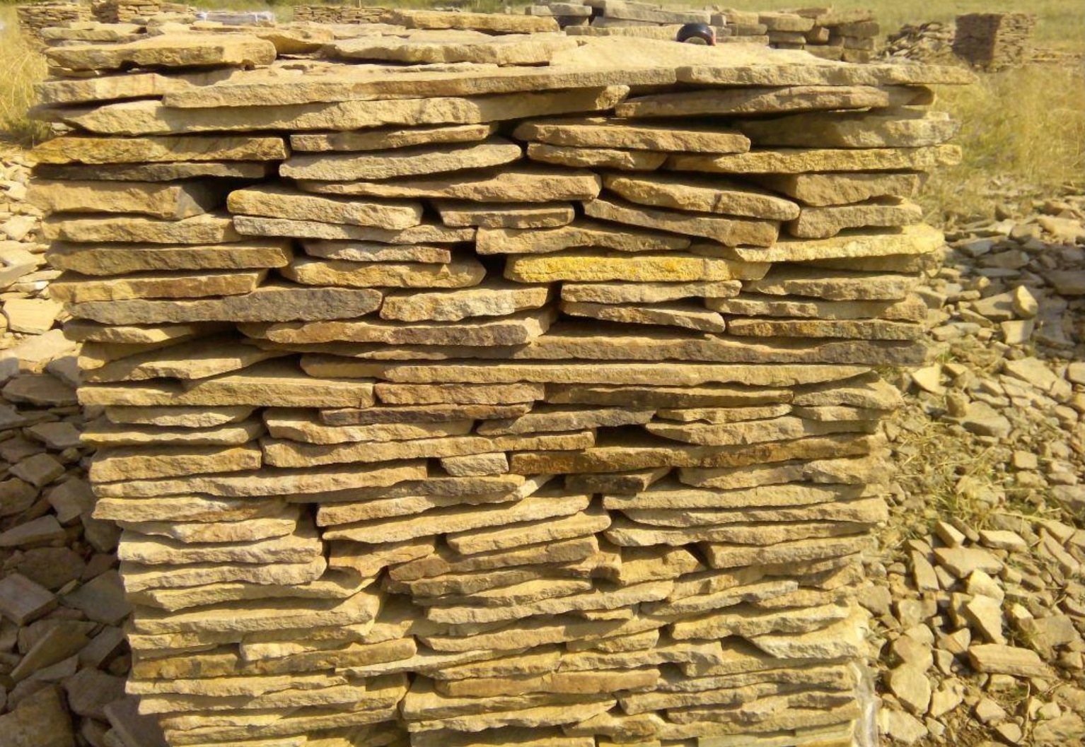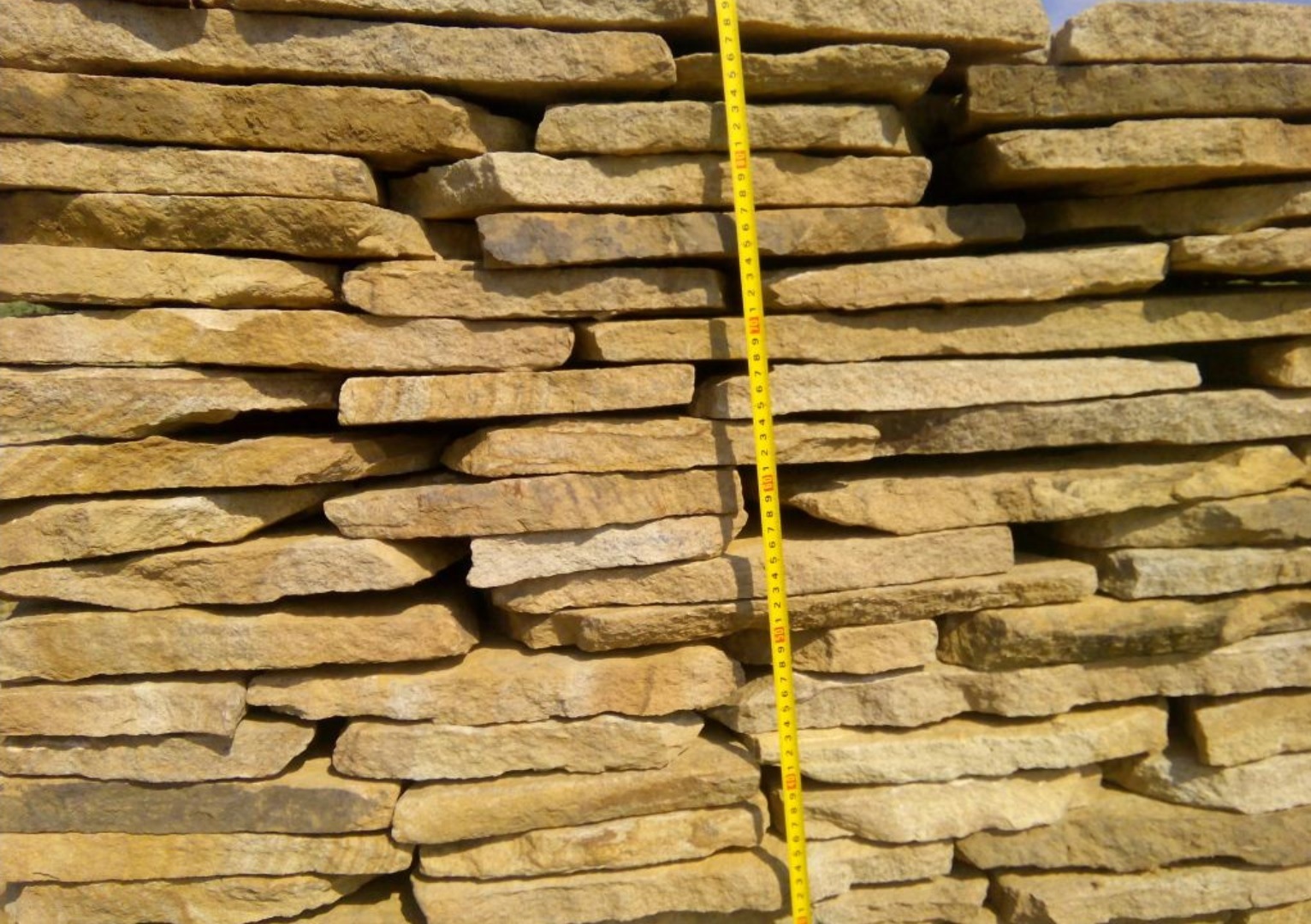 Kamenclub.ru: песчаник пластушка желтый с разводом под дерево (2 см) купить в Люберцах - заказать природный камень по низким ценам оптом с доставкой от производителя - kamenclub.ru