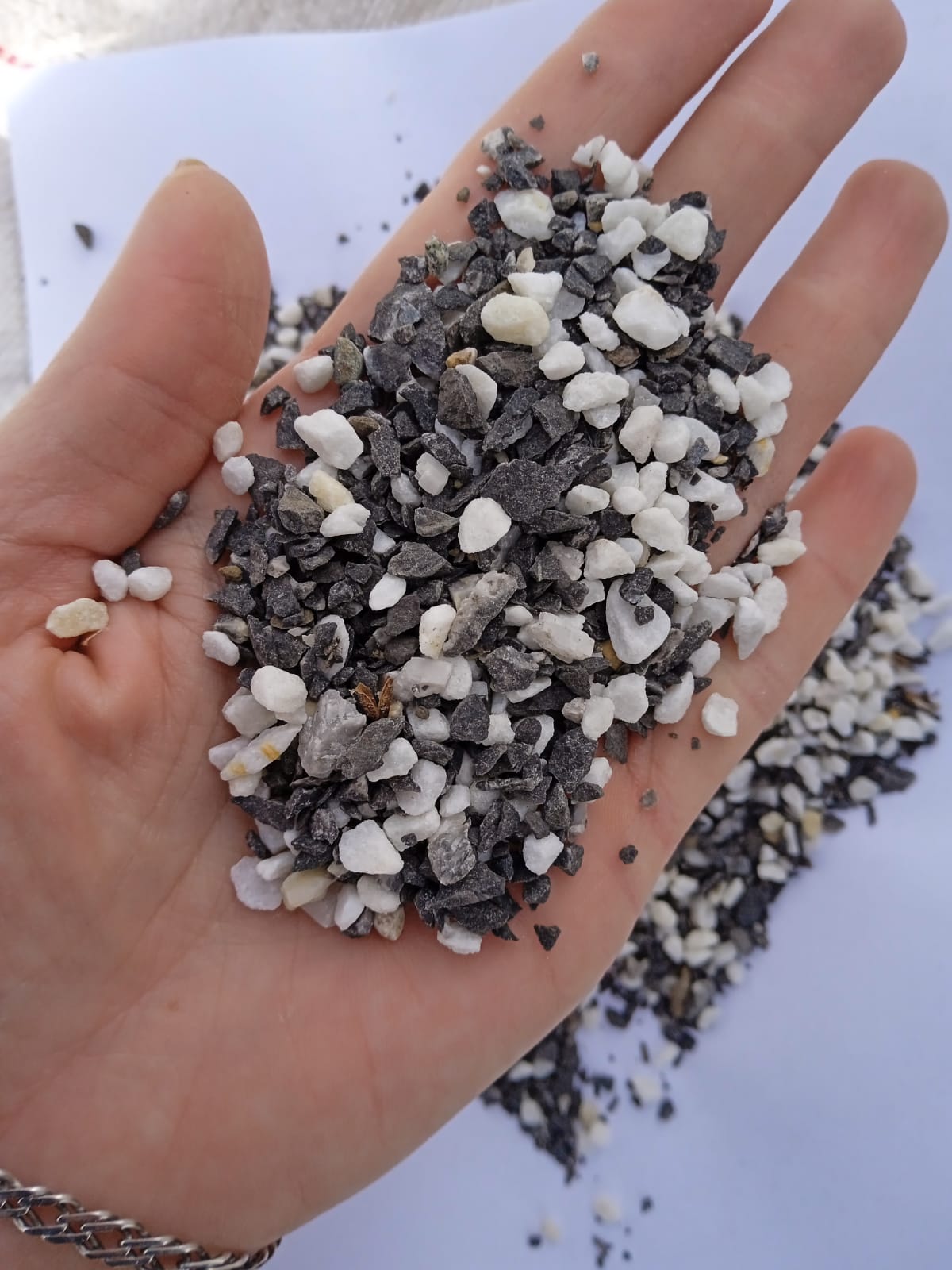 • Мраморная крошка (щебень галтованный микс:: белый-черный) фр.5-10 мм