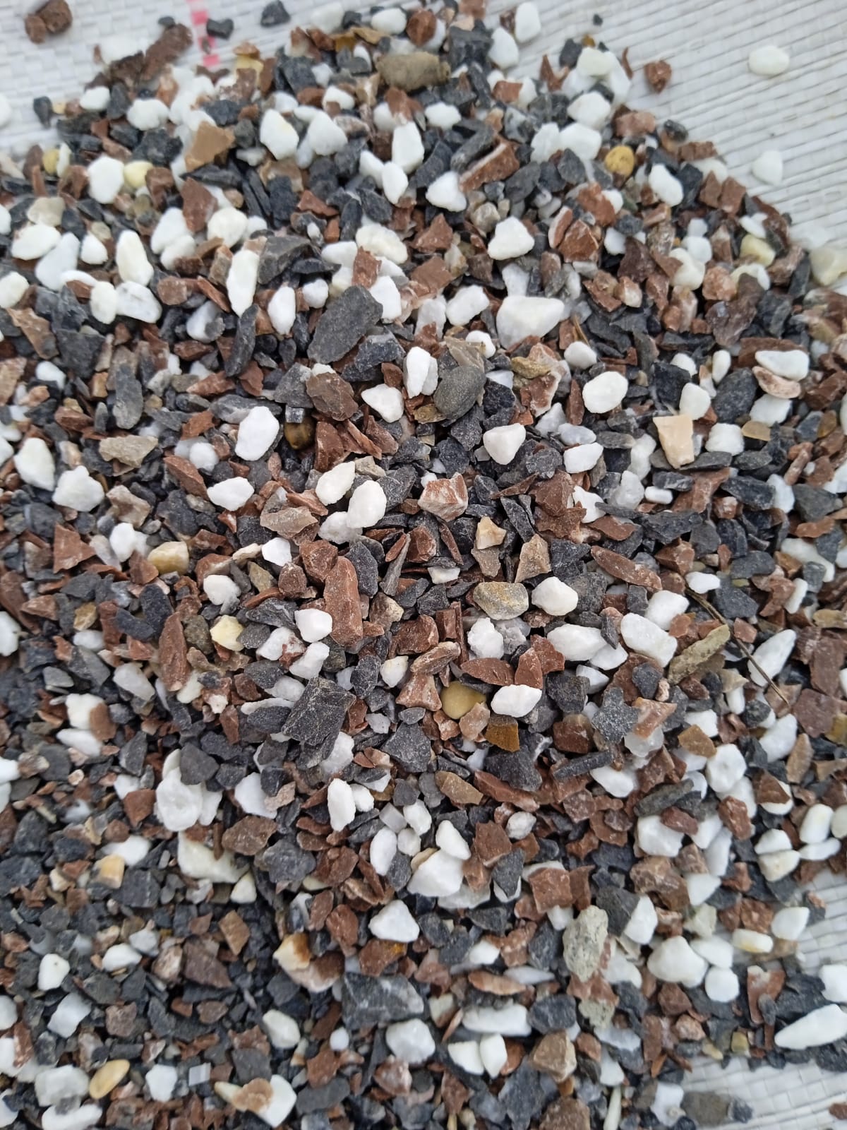 Мраморная крошка (щебень галтованный микс:белый-черный-розовый-медовый) фр.5-10 мм.